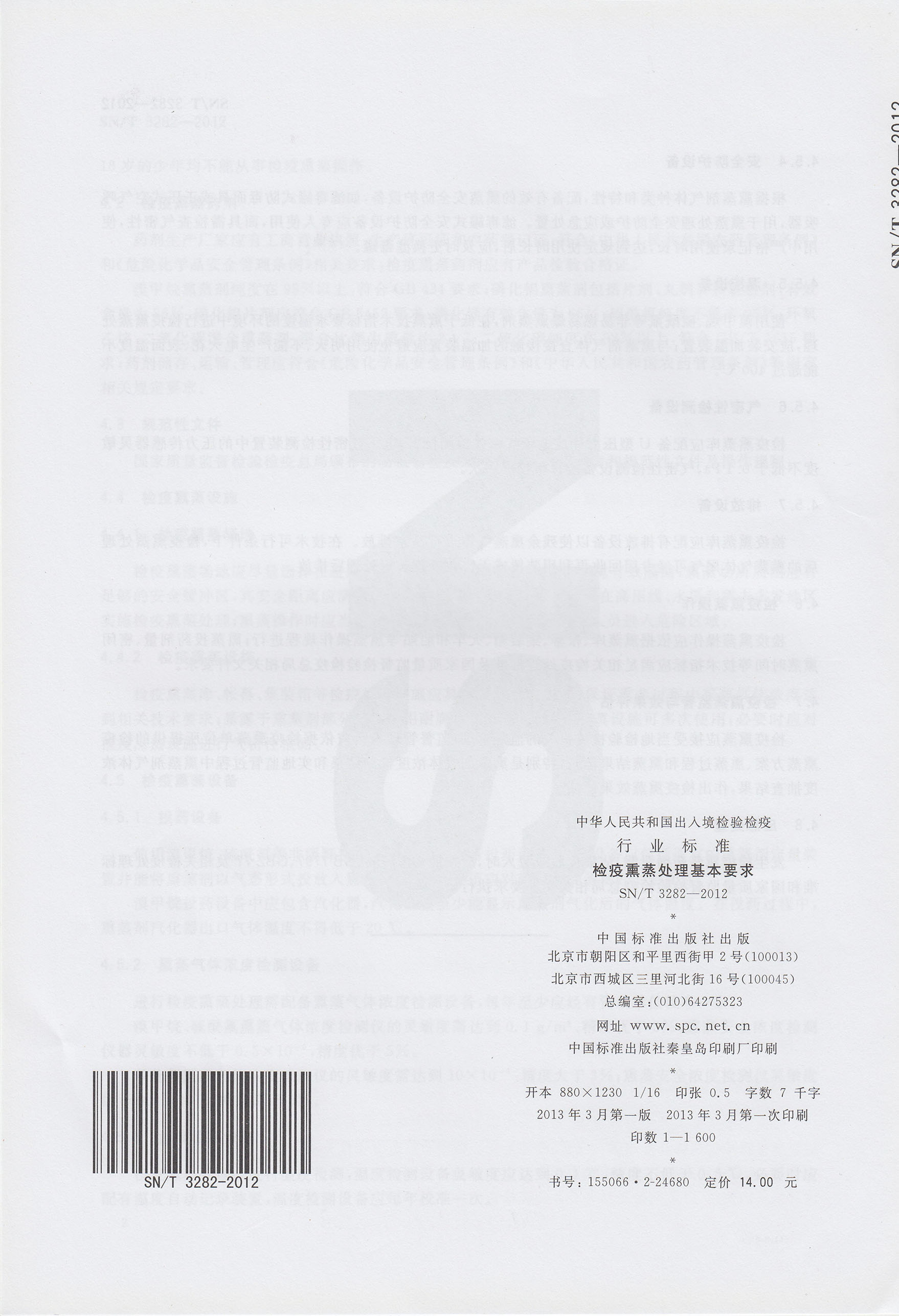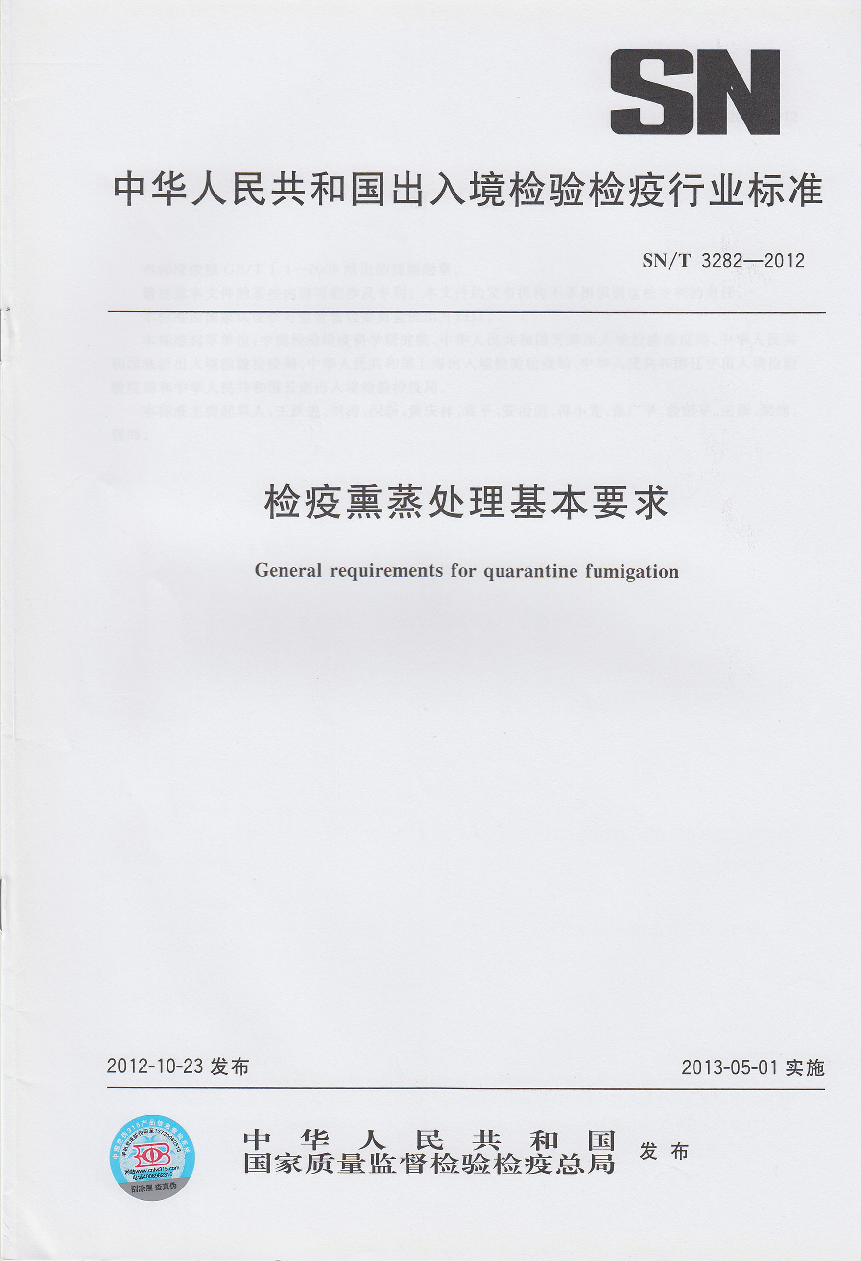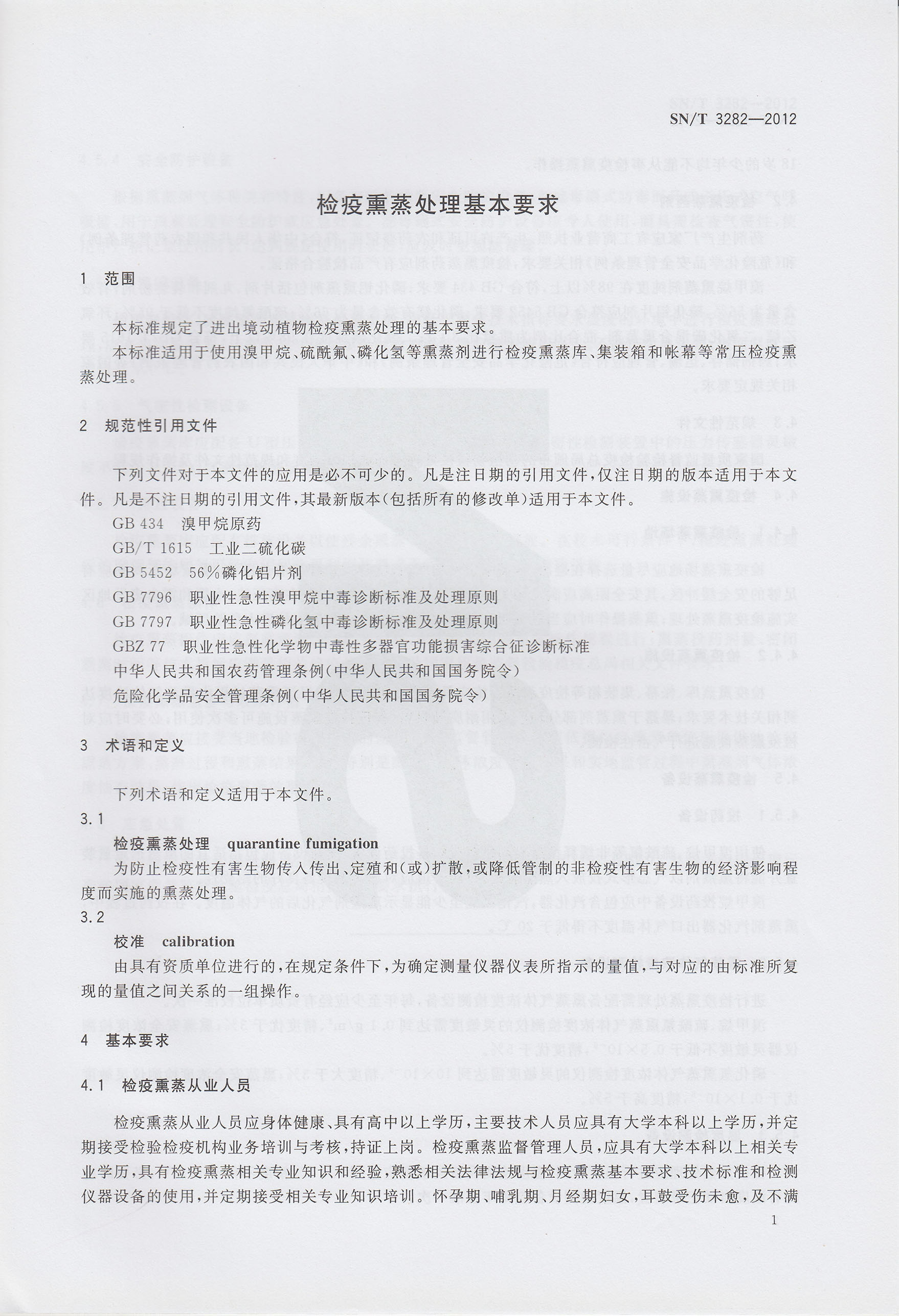 熏蒸檢疫處理基本要求(SNT3082-2012)